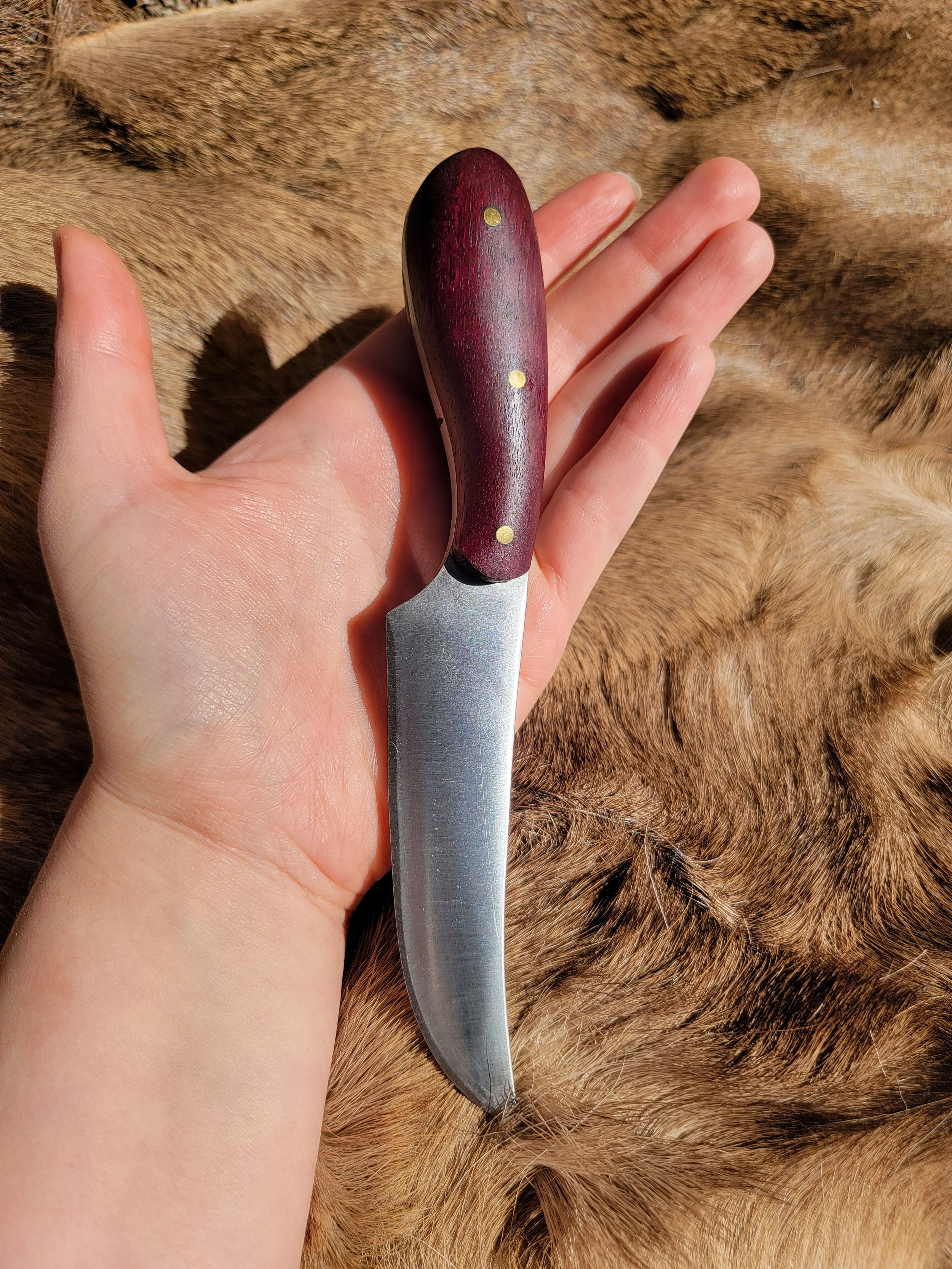 AKA Night Envoy lives in a home in RI. Made out of imported Ukraine Bog Oak for the darkest of handles, it also has a 1080 steel blade that has been blued.